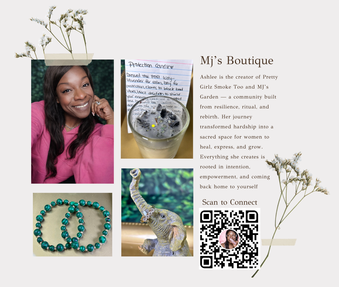 Tap into your inner goddess energy with handmade bracelets, candles, and rituals that celebrate feminine strength, balance, and transformation. Because your roots deserve to shine too.