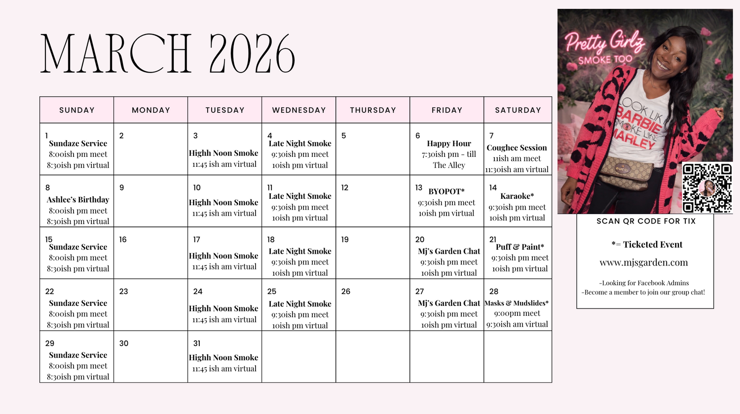 A sacred space for women who smoke with intention, heal in community, and rise in their truth. Weâre more than a vibeâweâre a movement. Rooted in sisterhood, ritual, and liberation. ⨠Puff. Heal. Empower. â¨