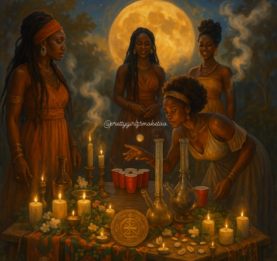 We’re still playing games, laughing, and puffing—but we’re also setting the altar. We’re honoring Nana, the womb of all creation, the cosmic grandmother who reminds us of our true power.
