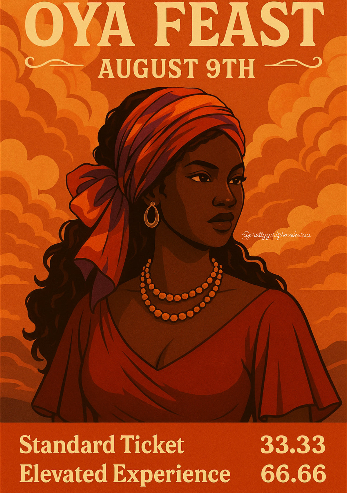 Join us as we honor Oya, the powerful Yoruba Orisha of winds, storms, transformation, and the marketplace. Her energy clears away what no longer serves us, opens the path for new beginnings, and protects what is sacred.
